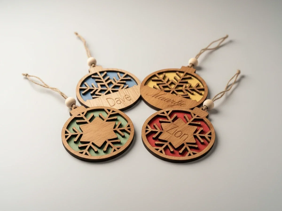 Ben je op zoek naar een uniek en persoonlijk kerstcadeau? Onze handgemaakte houten kerstballen worden volledig in eigen atelier gemaakt. Elke kerstbal wordt precies lasergesneden, met de hand geschilderd en voorzien van een gegraveerde naam. Zo ontstaat een prachtige en duurzame kerstdecoratie die elk jaar opnieuw plezier geeft.